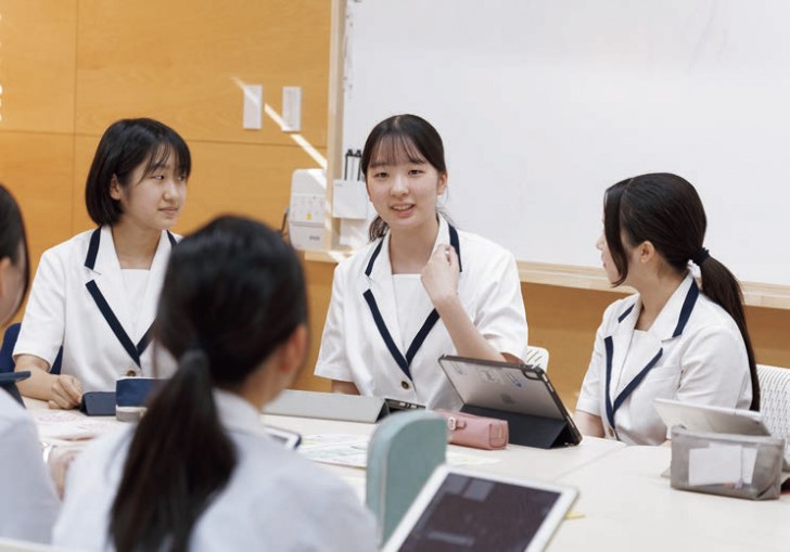 運動系・文化系それぞれクラブ活動は多彩ですが、ほかにも同校には「アフタースクール」と呼ばれる取り組みがあります。課外活動としては「茶道(表千家/上田宗箇流)」「華道」「筝曲」「ピアノ」を専門の先生に学ぶことができ、ほかにも「プログラミング」や、生徒自身が自主的にやってみたいことを実現する「Y-Lab」など、生徒個々の好奇心や探究心をサポートする体制がとられています。思い思いの場所で自習する生徒の姿もよく見られます。