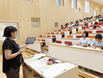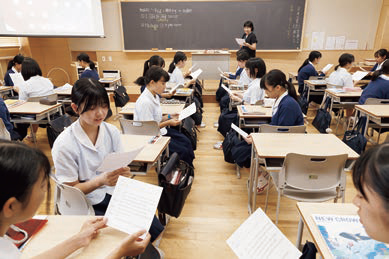 動名詞について学んでいたのは中2「英語」(担当・小森先生)。同校には海外研修・国際交流の機会として、ニュージーランドでのホームステイ(高1希望者)があるほか、中3・高1生(希望者)は姉妹校である台湾国立蘭陽女子高級中学の生徒たちと、相互に行き来して交流を行う機会もあります。
