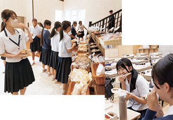 教室でワイワイと食べるのもよし。種類の多い焼き立てパンは大人気で毎日売り切れるそう