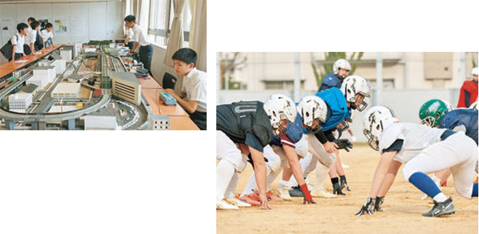ジオラマ制作に定評のある鉄道研究部や、ダイナミックなアメリカンフットボール部も大人気。