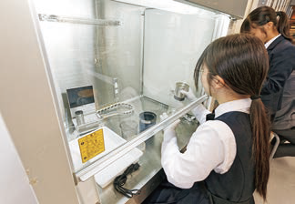 図書館のある南館1階は「Science Street」(サイエンス・ストリート)と呼ばれ、7つの科学教室がある。化学教室と生物教室には局所排気装置「ドラフトチャンバー」も設置され、本格的な実験も可能に。これぞSSHの本領発揮と言えるだろう。